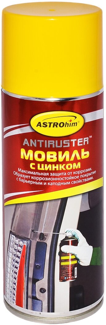 Мовиль ASTROhim АС-4805 с цинком 520 мл используется для надежной защиты скрытых деталей автомобиля от коррозии. Средство наносится на днище кузова, арки колес, в места стыков между панелями кузова. Применяется для антикоррозионной обработки сельскохозяйственной и производственной техники.