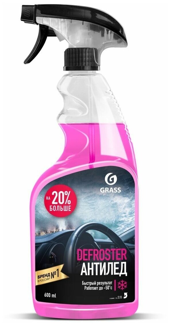 Размораживатель стекол и замков Grass Defroster 110404 удаляет снег и лед со стекол, фар, зеркал и дворников автомобиля. Антилёд размораживает дверные замки и уплотнители. Безвреден для лакокрасочного покрытия автомобиля, а также хромированных, пластиковых и резиновых поверхностей. Работает до -50 °С.