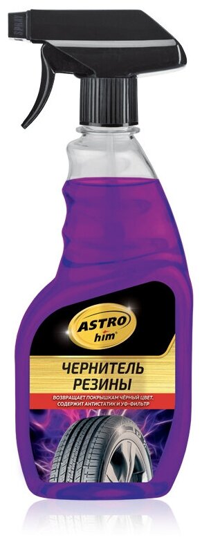 Чернитель резины ASTROhim - современный состав, специально разработанный для ухода за покрышками и любыми другими деталями автомобиля.Он очищает и придает эффектный глянцевый блеск, улучшает внешний вид резины. Возвращает покрышкам черный цвет.Средство разработано на водной основе и не содержит растворители, что обеспечивает безопасность использования для любых деталей автомобиля.Специальные добавки, содержащиеся в составе, предохраняют от растрескивания, защищают от старения и потери цвета.