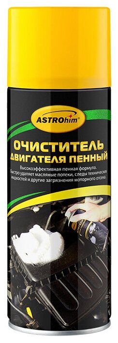 Пенный очиститель двигателя ASTROhim АС-387 обладает высокой адгезией. Средство после нанесения надолго остается на вертикальных поверхностях. Устраняет загрязнения даже в труднодоступных местах.