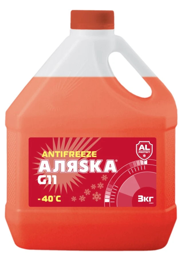 Антифриз "Аляска" G11 красный - низкозамерзающая охлаждающая жидкость, предназначенная для использования в системах охлаждения легковых автомобилей отечественного и зарубежного производства, грузовиков и других транспортных средств, со средним и тяжелыми условиями эксплуатации. Обеспечивает надежную работу системы охлаждения двигателя при температуре окружающей среды от -40°С до +50°С. Обеспечивает правильный тепловой режим эксплуатации двигателя, предотвращает появление коррозии и отложений в системе охлаждения. Не допускает замерзания, перегрева, выкипания и появления воздушных пробок.