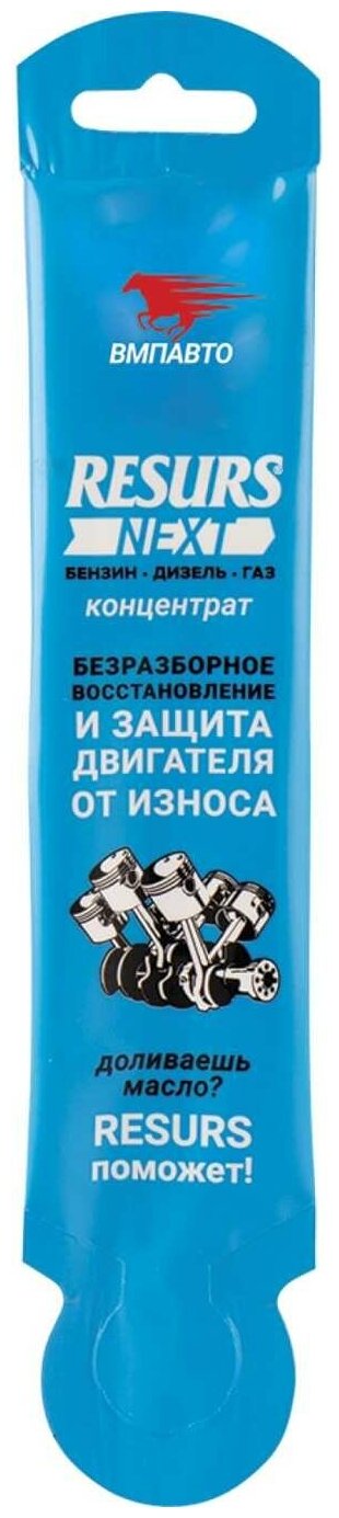 Присадка в масло Resurs Next концентрат 4305 это безразборный ремонт двигателя по экономичной цене. В составе присадки частицы сплава олова, серебра и меди в концентрированном виде. Продукт решает проблемы: угара масла, перерасхода топлива, неровной компрессия, вибрации и шума, дымления, недостаточной мощности двигателя. Активация состава происходит только при повышенной температуре, т.е. в зонах трения. Металлические наночастицы выравнивают структуру поверхностей деталей, приближая параметры двигателя к заводским. Не изменяет вязкость масла. Размер частиц меньше 1 мкм, что позволяет им свободно проходить через масляный фильтр. Не влияет на резиновые сальники мотора. Частицы не взаимодействуют с маслом и лишь используют его для доставки.