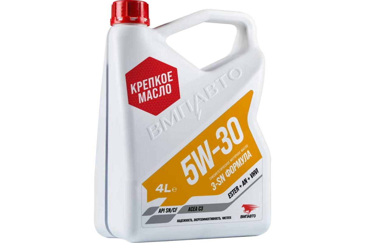 SN-пакет присадок, разработанный ВМПАВТО, обеспечивает защиту двигателя от износа, стабильные характеристики масла и чистоту деталей двигателя — всего через три замены двигатель будет очищен от лаковых отложений. Крепкий полимер увеличивает срок службы масла, сохраняя его вязкость. По устойчивости к разрушению выступает на одном уровне с топовыми брендами. Синтетическая основа, состоящая из VHVI-базы, эстеров и алкилированных нафталинов, делает масло энергосберегающим и с низким показателем угара.