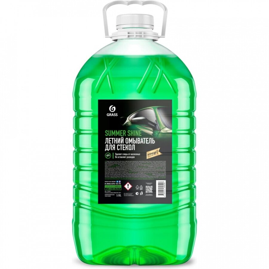 Стеклоомывающая жидкость Grass Summer Shine 110453 быстро и эффективно удаляет дорожную грязь, следы насекомых и птичьего помета со стекол и зеркал автомобиля в летний период. Предотвращает появление разводов и образование известковых отложений в форсунках стеклоочистителя. Улучшает обзор и повышает безопасность движения. Безопасен для всех типов лакокрасочного покрытия, резины и пластика. Обладает приятным ароматом.