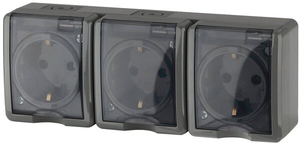 Розетка 3м с/з серая IP54 Эксперт Эра