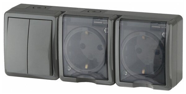 Блок роз. 2м с/з + выкл. 2кл серый IP54 Эксперт Эра