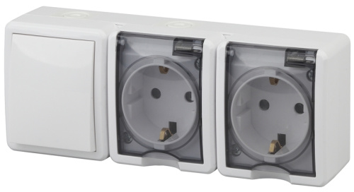 Блок две розетки с выключателем IP54 Эра Эксперт открытой установки белый. Номинальные характеристики 16А(10AX) 250В . Устройство выполнено из качественного поликарбоната, оснащёно уникальными винтовыми клеммами для максимально качественного зажима кабеля в механизме.