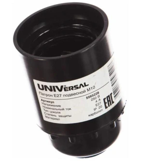 Патрон карболит настенный Е27 Universal M10, предназначен для комплектации светильников, а также для создания временного освещения на строительных или отделочных объектах. Корпус выполнен из карболита. Контактная группа выполнена из высококачественных материалов. Патрон надежен и безопасен в эксплуатации.