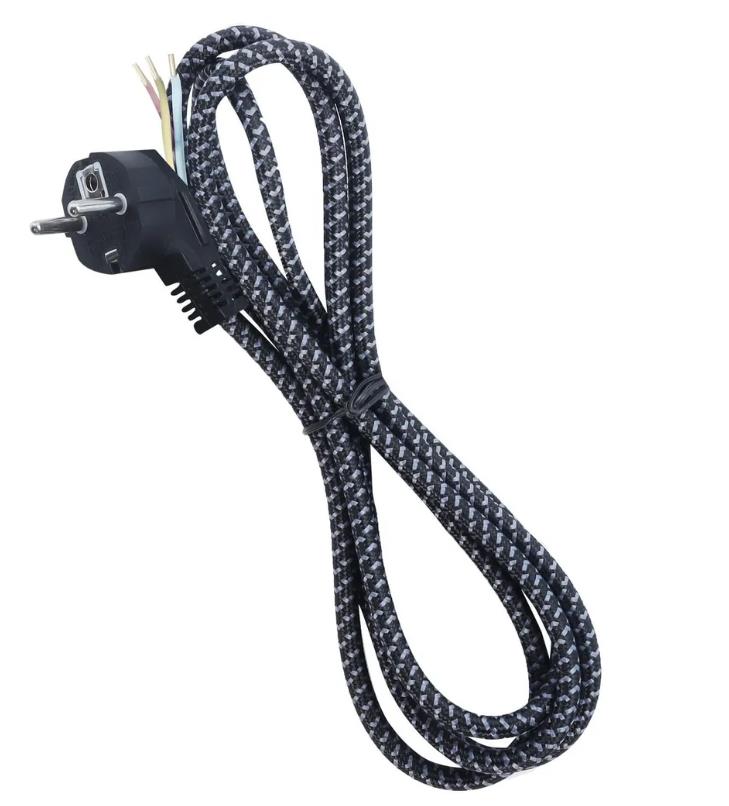 Сетевой шнур с вилкой в тканевой оплетке подходит к любому типу розеток как европейского, так и российского стандартов. Отличается простотой монтажа.