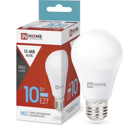 Матовая низковольтная светодиодная лампа грушевидной формы LED-MO серии PRO ТМ IN HOME используется в местах, где требования пожарной безопасности запрещают использовать электрическую сеть с напряжением 230 Вольт. Лампа LED-MO-PRO может применяться на производстве (например, для освещения станков и оборудования), в жилых помещениях с повышенной влажностью (санузлы, гаражи, погреба, подвалы и т.п.), а также в качестве судовых ламп, освещения на транспорте и переносных светильников. Конструкция исключает возможность поражения электрическим током. Работает при питании от сети с постоянным и переменным током.
