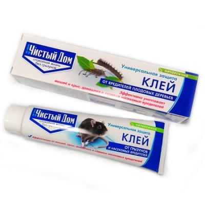 Клей Чистый дом 60 гр. 03-426 применяется для уничтожения грызунов и насекомых.Приманка кладется по середине подложки, рядом с местом обитания вредителей.Данное средство нетоксично.