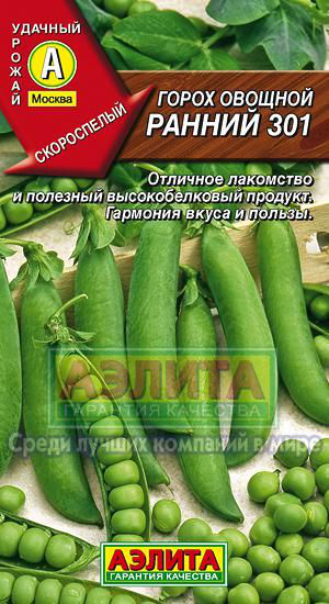 Сорт скороспелый с дружным созреванием бобов. Период от всходов до технической спелости 50-65 дней. Высота растения 68-71 см. Бобы лущильные, прямые, длиной 6-8 см. Общее число бобов на растении – 13-17 шт, семян в бобе – 5-7 шт. Горошины крупные, сладкие, содержат до 8% сахаров. Рекомендуют для свежего потребления, а также консервирования. Являясь азотфиксирующей культурой, горох накапливает в почве большое количество азота и поэтому служит хорошим предшественником для других культур.