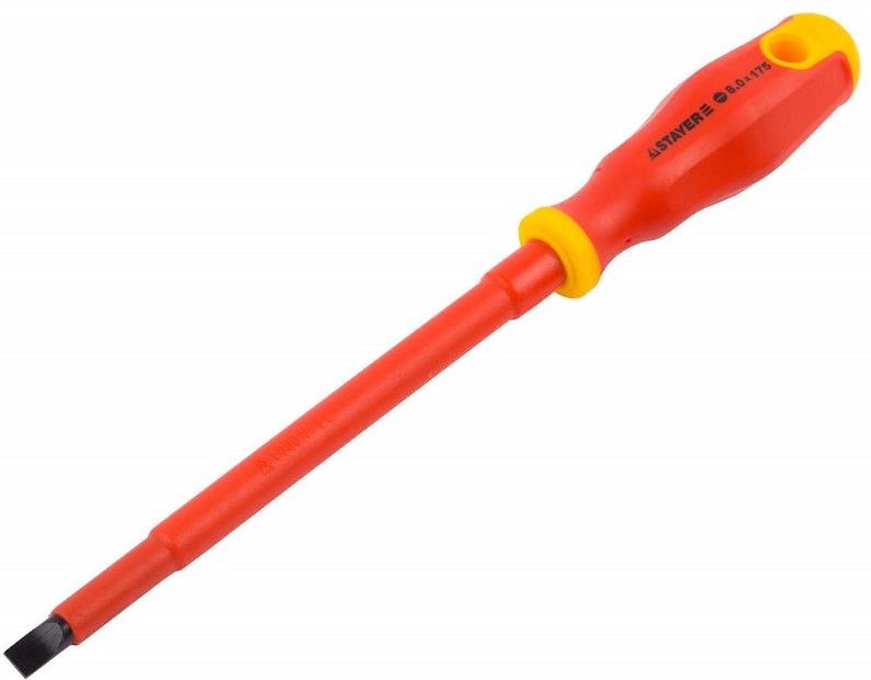 Диэлектрическая отвертка STAYER до 1000 В, SL8 х 175 мм 25141-08-17 используется с целью завинчивания и развинчивания крепежа около источников электронапряжения. Рабочая часть выполнена из долговечной хромованадиевой стали и имеет изоляционное покрытие для безопасной работы. За счет намагниченного наконечника инструментом легко и удобно пользоваться. Рукоятка отвертки не скользит в руке и обеспечивает надежный захват.