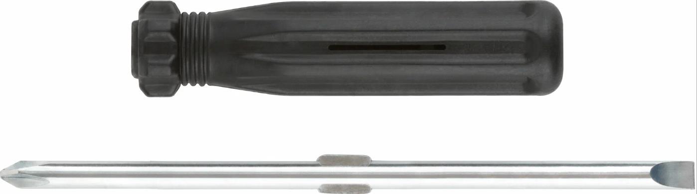 Отвертка c переставным жалом MOS 56201М PH2/SL6 60 мм представляет собой удобный инструмент, который всегда можно держать под рукой. Два наконечника на одном стержне уменьшают количество отверток, необходимых для монтажа/демонтажа крепежа. Рукоятка не скользит в ладони, что повышает качество работы. Преимущества отвертки MOS два наконечника на одном стержне. Длительный срок службы. Высокое качество инструмента.