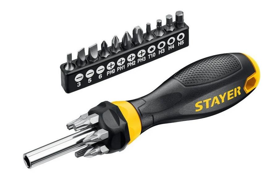 Набор отверток STAYER MASTER битодержатель, биты 25мм 15шт, 16 предметов 2545-H5_z01 предназначен для обслуживания резьбовых соединений. Биты изготовлены из Cr-V стали и обладают высокой прочностью. Двухкомпонентная рукоятка не скользит в руке и обеспечивает надежный захват во время работы.