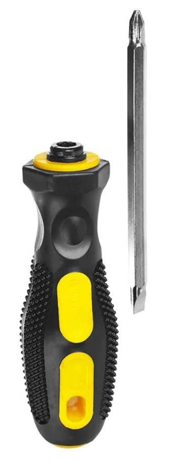 Отвертка STAYER MASTER с двусторонним стержнем, 2/6мм - 70мм, 2 предмета 2512 подойдет для домашнего и профессионального использования. Инструмент предназначен для монтажа и демонтажа резьбовых соединений. Специально сконструированная двухкомпонентная рукоятка оптимальной формы обеспечивает надежный и комфортный захват. Магнитный наконечник помогает при работе в труднодоступных местах.