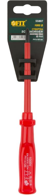 Изолированная отвертка 1х100 мм FIT 55807 предназначена для профессионального монтажа и демонтажа резьбовых креплений. Изолирующее покрытие позволяет работать с напряжением до 1000V. Стержень изготовлен из высокопрочной стали, что определяет долговечность инструмента.