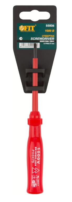 Изолированная отвертка 0х75 мм FIT 55806 предназначена для профессионального монтажа и демонтажа резьбовых креплений. Изолирующее покрытие позволяет работать с напряжением до 1000V. Стержень изготовлен из высокопрочной стали, что определяет долговечность инструмента.