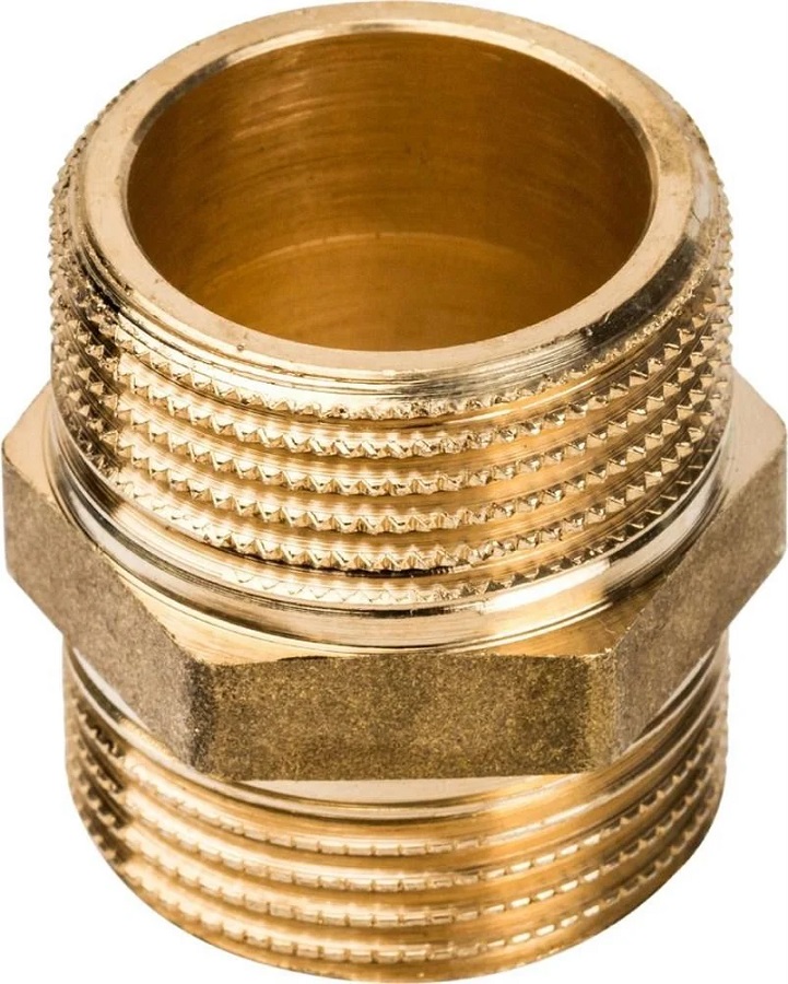 Ниппель латунный - это соединительный элемент трубопроводов из никелированной латуни, представляющий из себя цилиндр с резьбой, нарезанной на внешней его части. Относится к категории фитингов. Ниппель резьбовой латунный может применяться на трубопроводах, выполненных из любого материала (cталь, медь, полимеры, металлополимеры) при температуре проводимой среды 150 °С и давлении 40 Бар.
