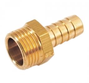 Штуцер для шлангов предназначен для присоединения шлангов к источнику воды посредством резьбового соединения. С одной стороны штуцера находится резьба 1/2 дюйма, с другой стороны - выход на шланг типа "елочка" 20 мм. Для надежности соединения шланг дополнительно закрепляется хомутом подходящего диаметра. Штуцер изготовлен из латуни марки ЛС 59-1.