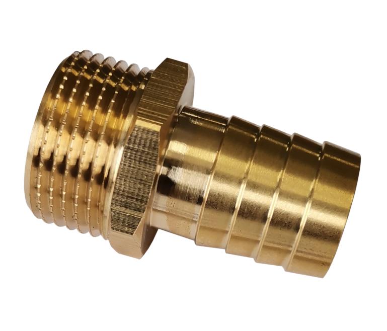 Штуцер для шлангов предназначен для присоединения шлангов к источнику воды посредством резьбового соединения. С одной стороны штуцера находится резьба 3/4 дюйма, с другой стороны - выход на шланг типа "елочка" 16 мм. Для надежности соединения шланг дополнительно закрепляется хомутом подходящего диаметра. Штуцер изготовлен из латуни марки ЛС 59-1.