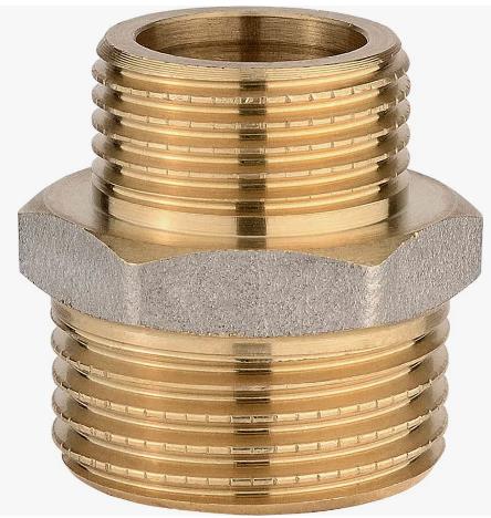 Соединительная деталь трубопровода, предназначенная для промышленного и бытового использования в системах горячего/ холодного водоснабжения, отопления, охлаждения, неагрессивных жидкостей, пара, ГСМ, газа I группы (кроме сгона разъемного). Подходит для стыковки элементов разного диаметра, имеющих внутреннюю резьбу. Ниппель-переходник изготовлен из прошедшей пескоструйную обработку никелированной латуни, совместим с медными трубами.