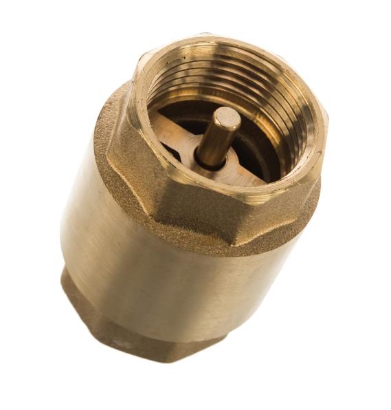 Обратный клапан 3/4" с латунным штоком предназначен для защиты трубопровода от обратного потока рабочей среды. Применяется в трубопроводах систем питьевого, хозяйственно-бытового и промышленного назначения, трубопроводах систем холодного, горячего водоснабжения, отопления, сжатого воздуха и жидких углеводородов. Данный обратный клапан монтируется в любом положении, а направление потока рабочей среды указано стрелкой на корпусе. Корпус и золотниковый механизм (шток, верхняя и нижняя тарелки) обратного клапана изготовлены из высококачественной горячепрессованной латуни.