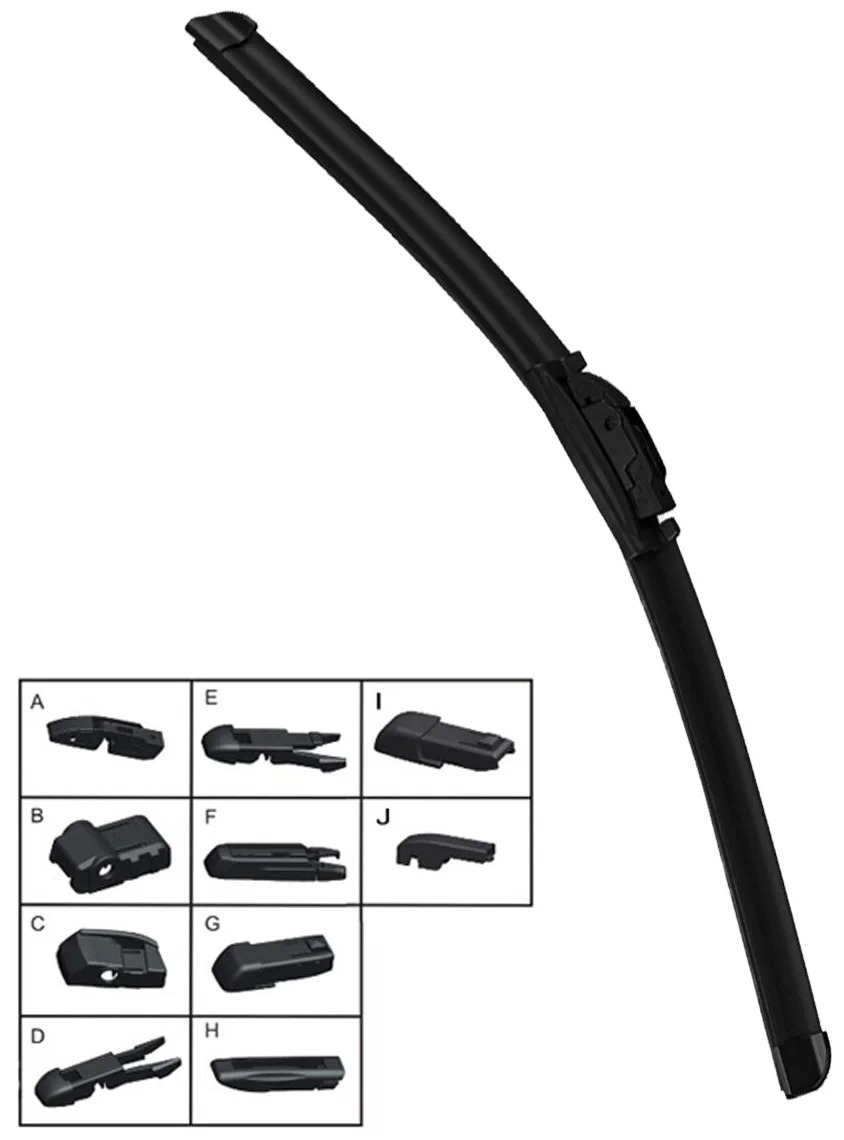 Бескаркасная щетка стеклоочистителя Aviel Multi 400 мм., FB90116. Щётка со спойлером, благодаря чему она отлично прижимается к лобовому стеклу на больших скоростях. Щетки Multi можно устанавливать на автомобили как с левым так и с парвым расположением руля, так же на автомобили с распашной системой стеклоочистителей. Чистящая лента с графитовой пропиткой. Мультикрепление щётки, 10 оригинальных адаптеров Aviel (адаптеры в комплекте).