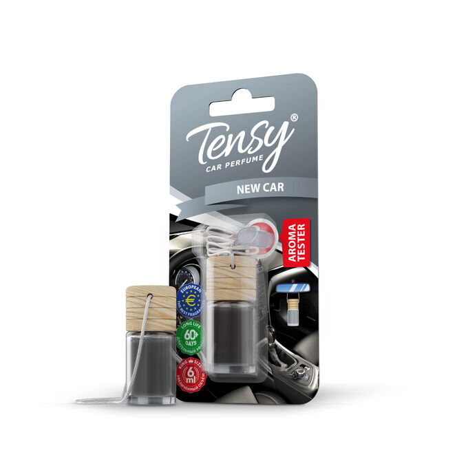 Подвесной ароматизатор Tensy в стеклянной бутылочке со стильным шнурком удобно использовать в автомобиле. Аромат "Новая машина", благодаря массивной деревянной крышке из натурального бука аромат плавнее и дольше передается в салоне, эффективно устраняя неприятные запахи. Для усиления аромата периодически переворачивайте флакон в закрытом состоянии и слегка пропитывайте крышку ароматической жидкостью. Для создания данной ароматической композиции используются только высококачественные парфюмерные отдушки из Франции.