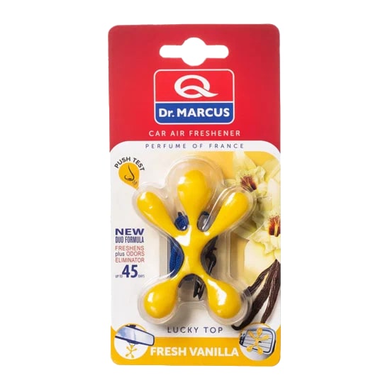 Автомобильный ароматизатор Dr. Marcus Lucky Top Fresh Vanilla - это высококачественный освежитель воздуха для вашего автомобиля. Этот ароматизатор раскрывается медленно в течение 45 дней, что позволяет наслаждаться свежим и приятным запахом в течение всего времени.
