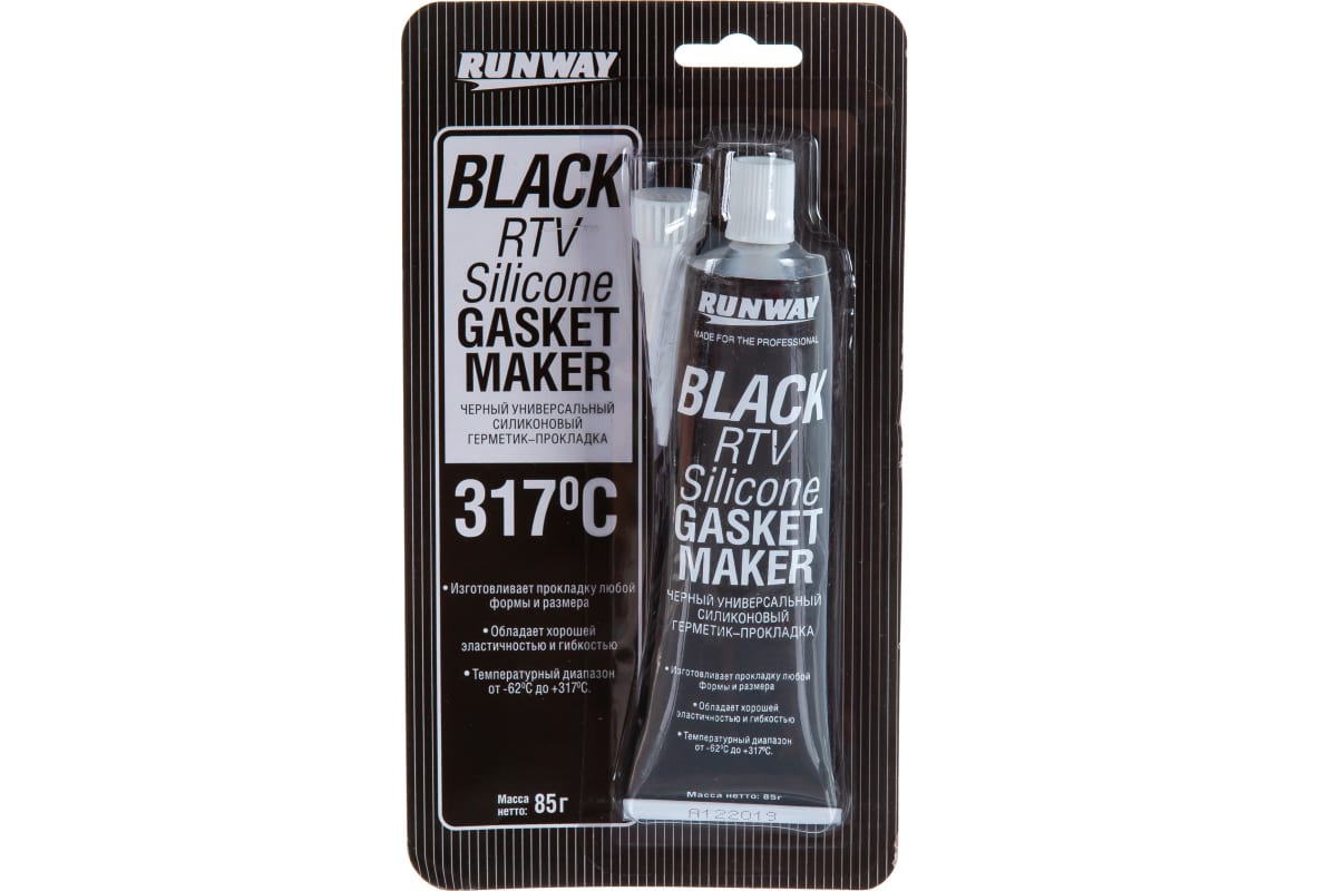 Силиконовый высокотемпературный герметик Runway RW8501 черный, 85 г 54978 предназначен для быстрого ремонта узлов и агрегатов, работающих в условиях повышенных температур. Продукт используют для клапанной крышки, помпы, термостата, дверей и крышки багажника, трубопроводов, глушителя. Состав заполняет мельчайшие трещины, обладает хорошей адгезией, эластичностью и упругостью.