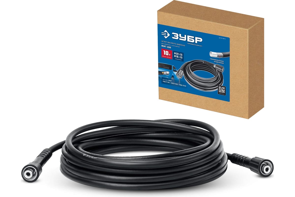 Шланг высокого давления 10 м, для минимоек с пистолетом Зубр Миг-280 70411-280-10 применяется для подачи воды под давлением на расстояние от изделия. Подходит для моек АВД-П180, АВД-П200, АВД-П240.