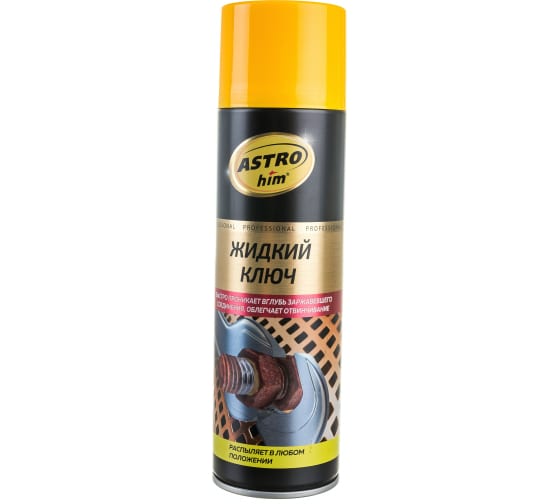 Жидкий ключ ASTROhim АС-4516 быстро и эффективно растворяет ржавчину на металлических изделиях. Средство имеет высокую проникающую способность, облегчает отвинчивание заржавевших крепежных соединений.