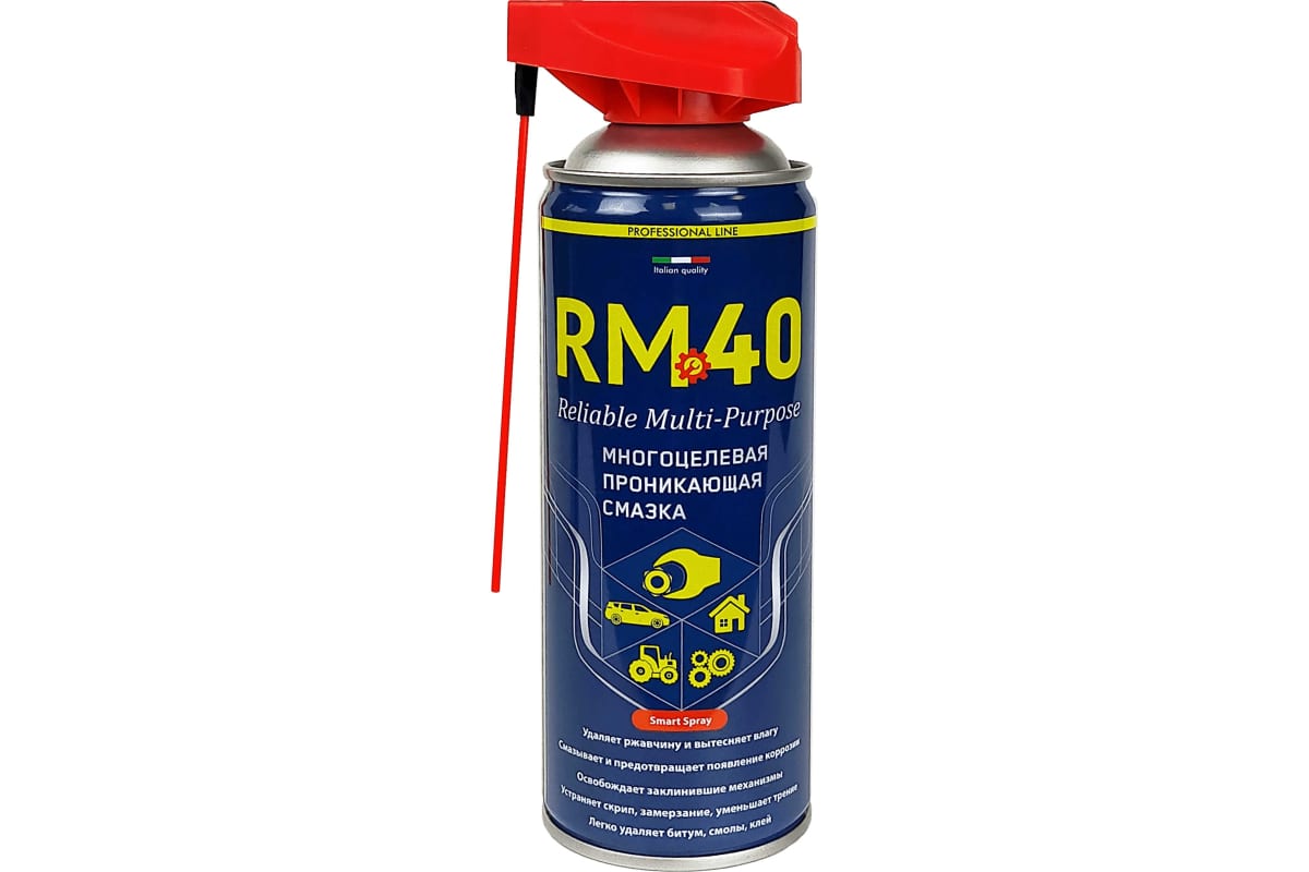 Универсальный многоцелевой продукт, особый состав которого обеспечивает разблокирование заржавевших, а также окисленных деталей и механизмов. Спрей обладает высокой проникающей способностью, антикоррозионными, антиокислительными и водоотталкивающими свойствами. Предназначен для обслуживания автотранспортных средств, а также для множества применений в быту и промышленности. Идеально подходит для обработки электроконтактов подвижных лодочных винтов, велосипедных подшипников, садовых и ручных инструментов, обработки петель и замков.