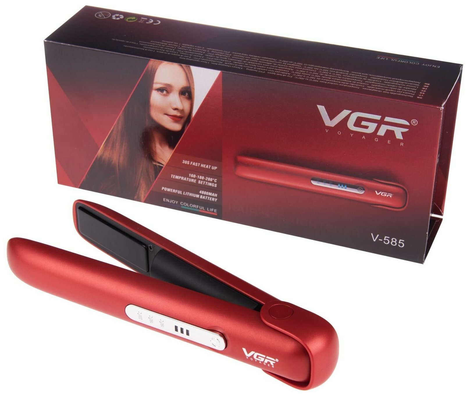 Утюжок для волос VGR V-585. Портативный беспроводной выпрямитель для волос: Новый стильный беспроводной выпрямитель для волос, отличная замена традиционного плоского утюга. Не нужно искать розетку, вы можете использовать ее в любое время и в любом месте, что подходит для путешествий, свиданий, покупок, деловых поездок. Большая батарея емкостью 4800 мАч, перезаряжаемая батарея USB емкостью 4800 мАh хватает на 60 минут после полной зарядки (Не используйте ее во время зарядки). Нагревательные пластины сделаны из керамики высокого качества. Нагреваются быстро (за 30 секунд) и равномерно, помогут вам придать волосам идеальный вид за считанные минуты. Отлично подойдет для подарка.