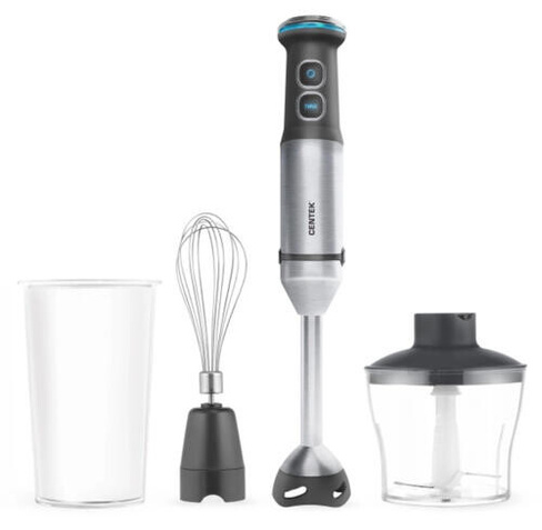Блендер погружной Centek - это блендер для кухни, выполнен в серебристом корпусе и представляет собой функциональный прибор, при помощи которого вы сможете не только смешать коктейль, приготовить соус или майонез, но и измельчить продукты, взбивать яйца для бисквита и готовить крема. А все потому, что прибор предусматривает наличие трех насадок – блендера, измельчителя и венчика. Мощность устройства 1500 Вт говорит о его эффективности: он справляется со своими задачами максимально быстро и качественно. Поддержка пятнадцати скоростей, а также турборежима позволит выбрать подходящий режим для определенной задачи. Корпус блендера погружного Centek, а также его погружная часть изготовлены из прочного и износостойкого металла. Блендер погружной отлично подходит в качестве подарка на любой праздник. Порадуйте себя и близких прекрасным подарком. Емкость измельчителя рассчитана на 650 мл, что позволяет измельчать в нем продукты: вы сможете измельчить орехи, сыр, овощи, а также перемолоть на фарш.