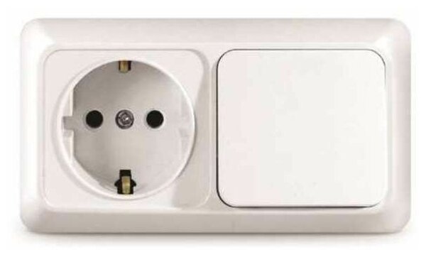 Блок розетка с/з + выключатель 1кл белый Олимп Universal
