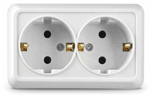 Розетка Олимп с заземлением белая UNIVersal представлена потребителю в серии "Олимп", для открытой установки сочетает в себе функциональность с практичностью. Изделия данной серии удачно вписываются в интерьер любого помещения и производят приятное впечатление.