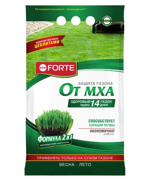 Комплексное средство создано лабораториями Bona Forte для применения на ослабленных мхом газонах.