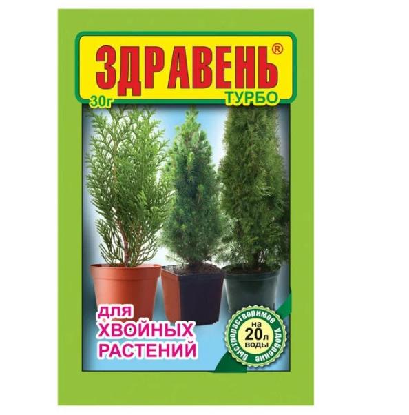 Здравень Турбо для хвойных растений гарантирует правильное, гармоничное развитие растения, повышает качество, густоту и насыщенность окраски хвои, укрепляет корневую систему.