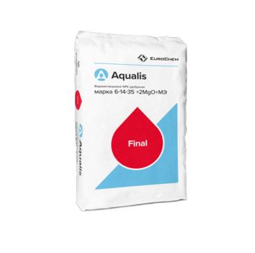 Удобрение Aqualis Final комплексное водорастворимое агрохимическое средство с повышенным содержанием соединений калия и с низким содержанием соединений азота. Используется в конце периода вегетации культур с целью стимулирования их цветения или развитие плодов – удобрение усиливает поступление полезных веществ в продуктивные части растения и повышает в них содержание сухих веществ. При этом Аквалис Финальное не способствует развитию листовой части растений. Содержащиеся в препарате магний, сера и микроэлементы формируют красивые, сочные и крепкие плоды у овощных культур, повышают качество зерна и корнеплодов.