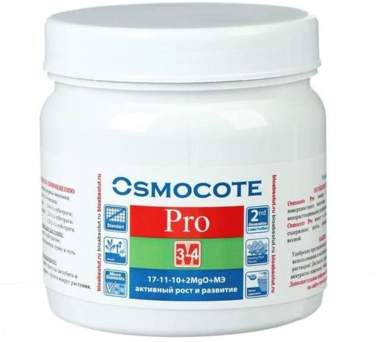 ОСМОКОТ ПРО 17-11-10+2MgO+МЭ (3-4М) комплексное минеральное удобрение с микроэлементами в мембранной оболочке с контролируемым высвобождением элементов питания (пролонгированного действия) для основного внесения и в подкормку под различные плодово-ягодные и цветочно-декоративные культуры при их горшечном и контейнерном выращивании в открытом и защищенном грунте.