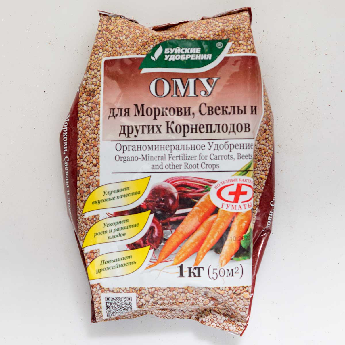 Удобрение для моркови, свеклы и других корнеплодов от фирмы Буйские удобрения. Это комплексное гранулированное удобрение пролонгированного действия на основе низинного торфа, который содержит гуминовые вещества, макро- и микроэлементы. ОМУ для моркови, свеклы и других корнеплодов" не только повышает прирост урожая, но и улучшает питательную ценность продукции. Это происходит благодаря оптимальному соотношению элементов питания, которое предохраняет от избыточного накопления нитратов в продуктах и повышает морозоустойчивость и сопротивляемость растений болезням.