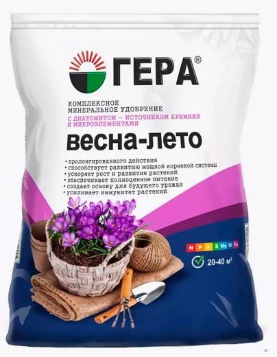 Удобрение минеральное Гера Весна-Лето универсальное это комплексное минеральное удобрение, предназначенное для применения в начале вегетационного периода (весна-лето) на различных сельскохозяйственных культурах.