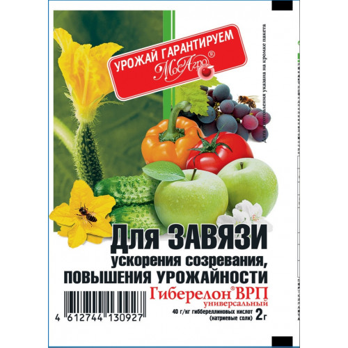 МосАгро Гиберелон для завязи – водорастворимое удобрение в виде порошка с действующим веществом. Применяется в качестве внекорневой подкормки для овощных, плодово-ягодных и цветочно-декоративных культур. Препарат стимулирует образование и снижение опадения завязей, ускоряет созревание, повышает урожайность и улучшает качество получаемой продукции, формирует устойчивость к неблагоприятным факторам окружающей среды.