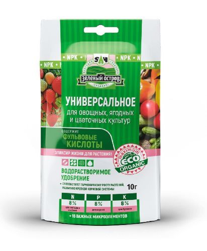 Комплексное водорастворимое удобрение для рассады, подкормок овощных, плодово-ягодных и цветочных культур. Способствует гармоничному росту растений и развитию крепкой корневой системы. Содержит незаменимые фульвовые и гуминовые кислоты, необходимые для роста и развития растений.