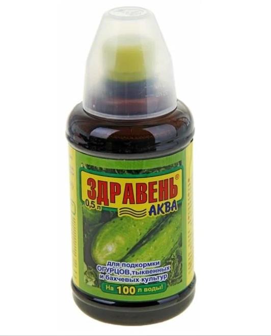 Здравень-аква для огрурцов жидкое комплексное органоминеральное удобрение для корневых и внекорневых подкормок огурцов, тыквенных и бахчевых культур в личных подсобных хозяйствах.