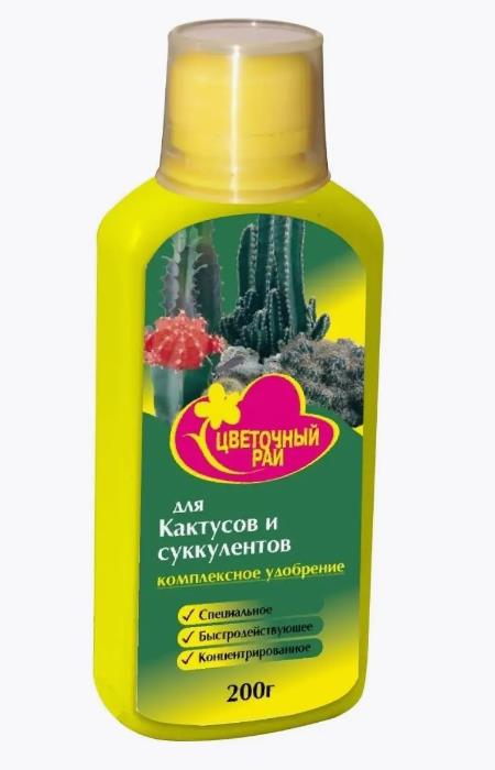Жидкие подкормки Цветочный рай. Удобрение для корневых подкормок кактусов и суккулентов. Стимулирует развитие побегов, сочной зеленой листвы, обильного и длительного цветения. Устраняет видимые проявления дефицита элементов питания, предотвращает развитие болезней, вызванных недостатком тех или иных микроэлементов.