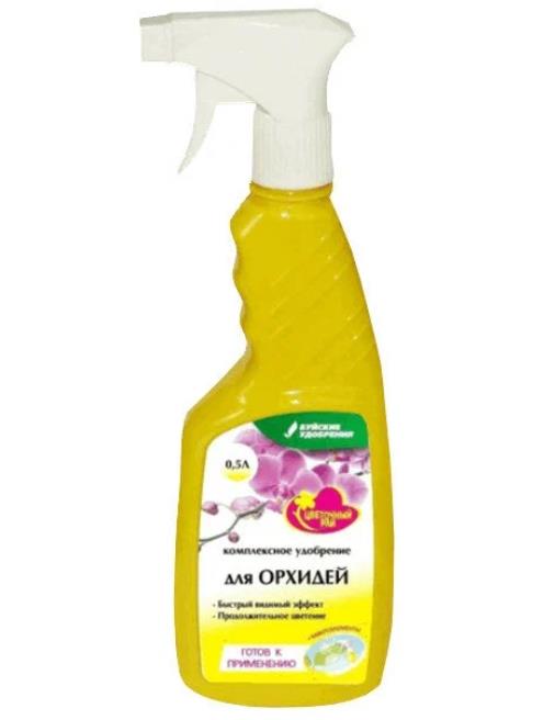 Удобрение для орхидей Цветочный рай 0,5л спрей - это комплексное жидкое удобрение, специально разработанное для орхидей. Оно обеспечивает быстрый и видимый эффект, способствуя обильному бутонообразованию и появлению роскошных цветков с яркой окраской.