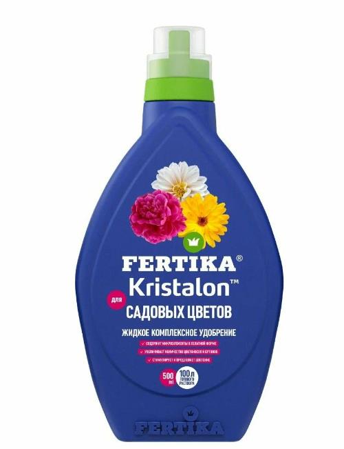 Удобрение Фертика Кристалон для садовых цветов жидкий комплексный состав, богатый полезными веществами и микроэлементами. Способствует улучшению интенсивности окраски листьев и цветков, продолжительному цветению.